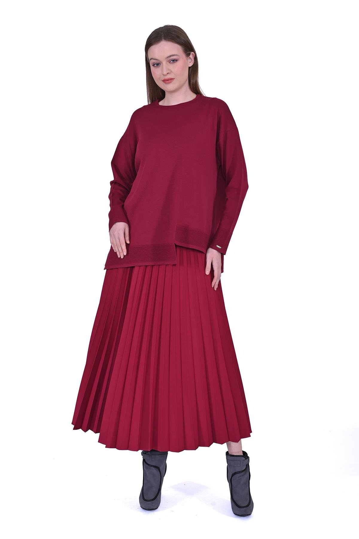 Trikodan üretilen bu tunik, zarif işlemeleriyle farklı bir şıklık sunar. Hafif dökümlü kesimi, rahat kalıp pantolonla uyumlu bir takım oluştururken gün boyu konfor sağlar. İnce detaylı nakışlar, sade siluete sofistike bir hava katar.