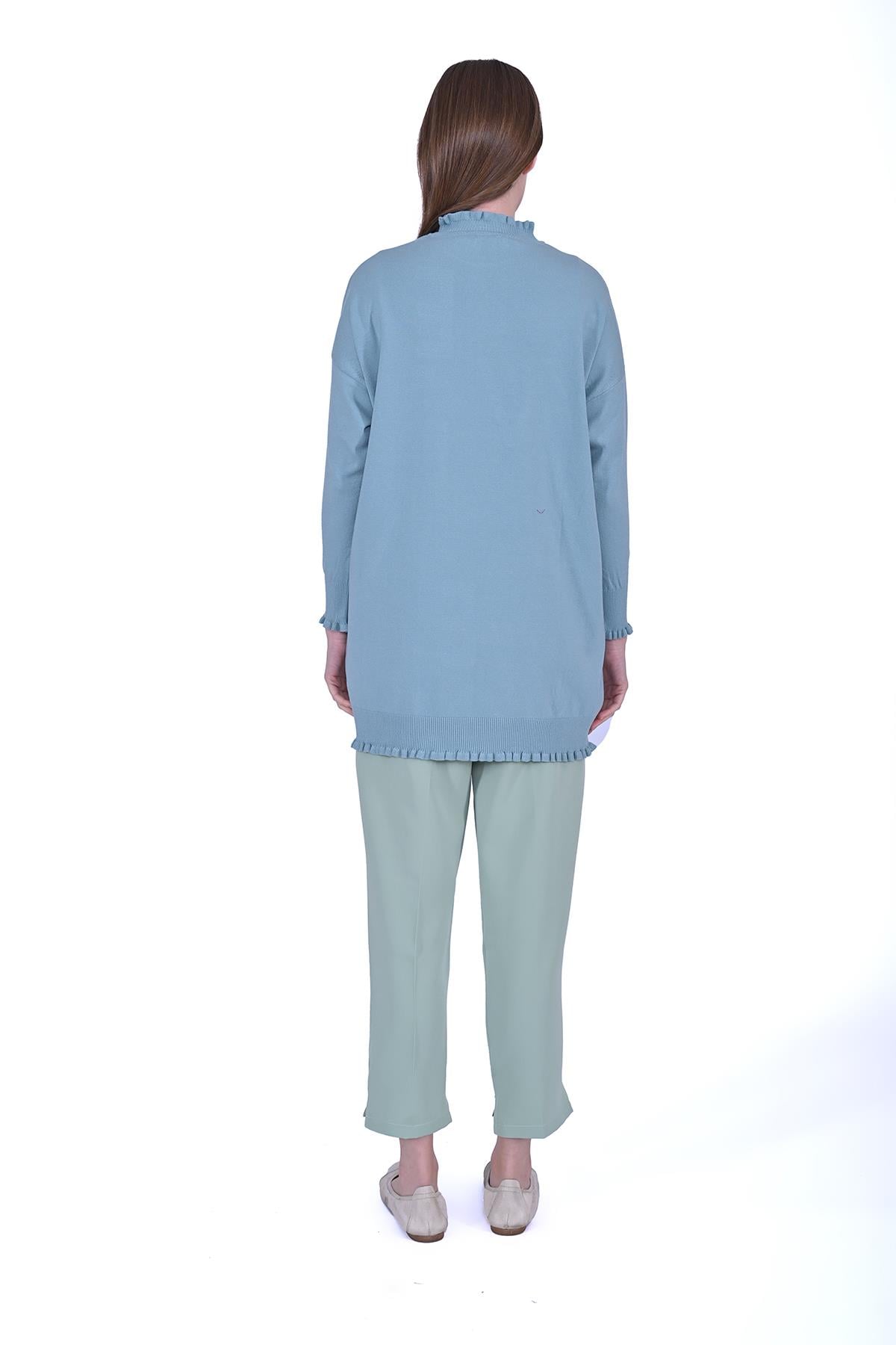 Yumuşak dokulu triko tunik, sade şıklığı sevenler için ideal bir parça. Gövdedeki kabartma yazı detayları modern bir hava katarken, fırfır yaka ve etek ucu tasarımıyla zarif bir görünüm sunar. Şıklığı sadelikle buluşturan zarif bir tunik!
