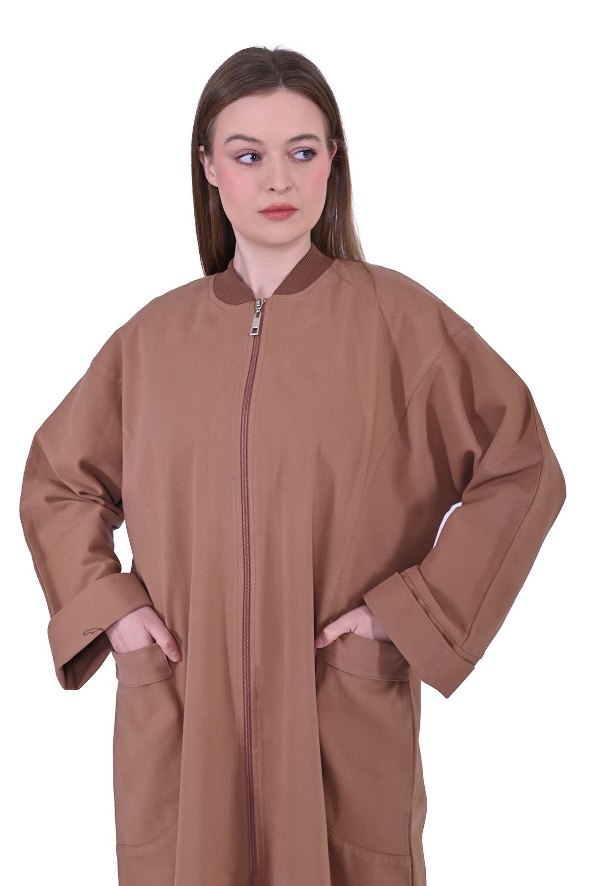 Fermuarlı Uzun Bomber Ceket