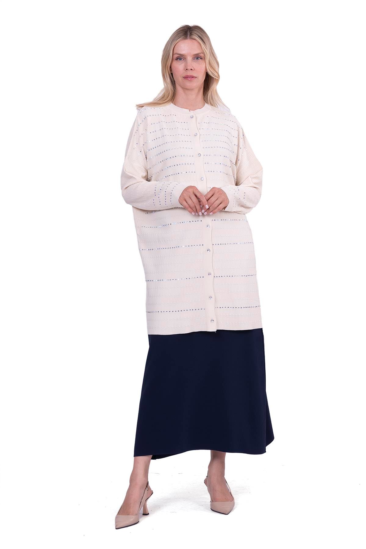 Kum Triko Taşlı Hırka VANİLYA (7125)