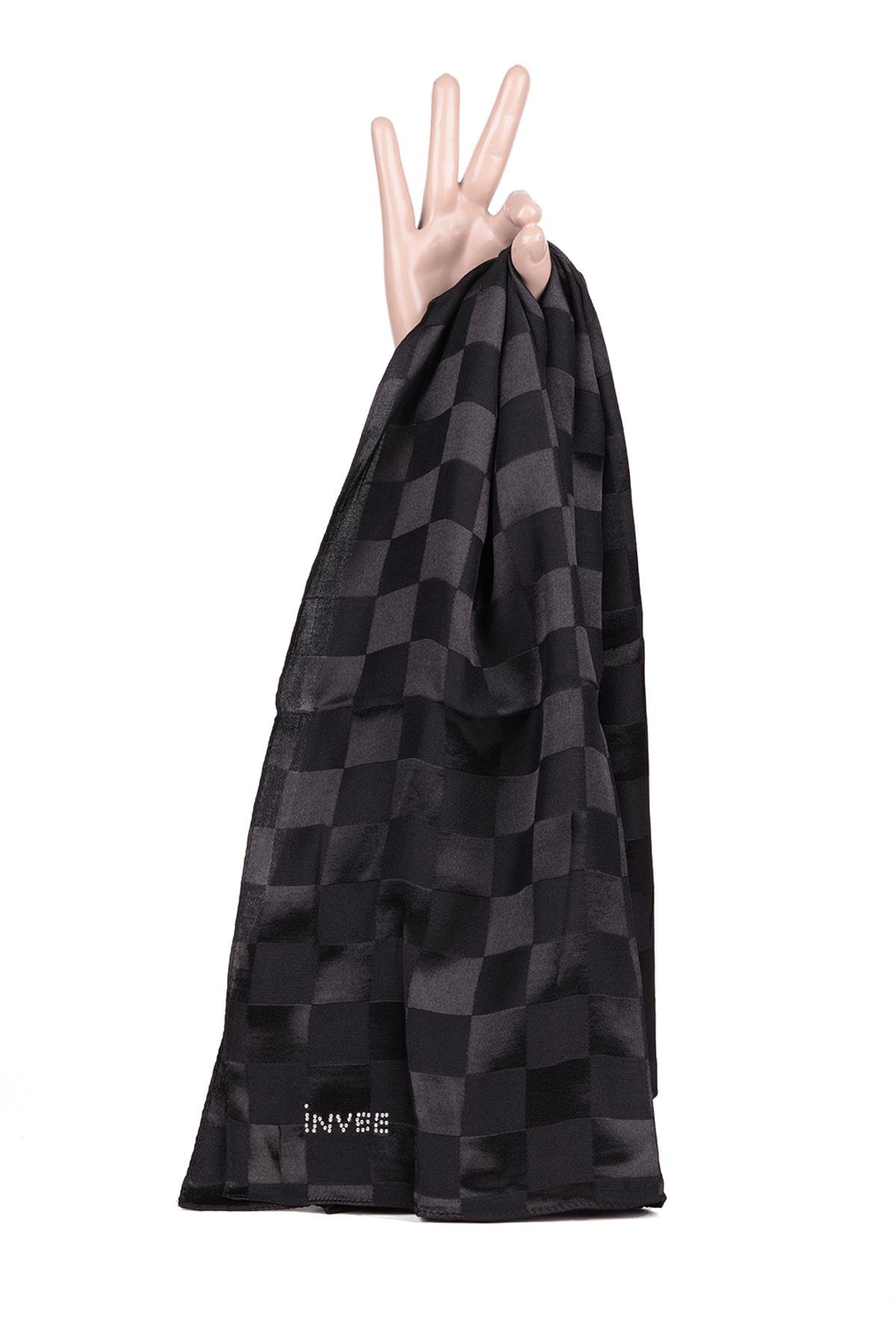 Göz alıcı mat-parlak yüzeyi, jakar dokumalı dama desenleri ve renk yansıtma özelliğiyle öne çıkan İNVEE Şahane Kare Şal, 100x100 cm kare formu ile hem modern hem klasik tesettür tarzına uyum sağlar. %50 viskon, %50 pamuk içeriği sayesinde nefes alır, terletmez ve gün boyu konfor sunar.