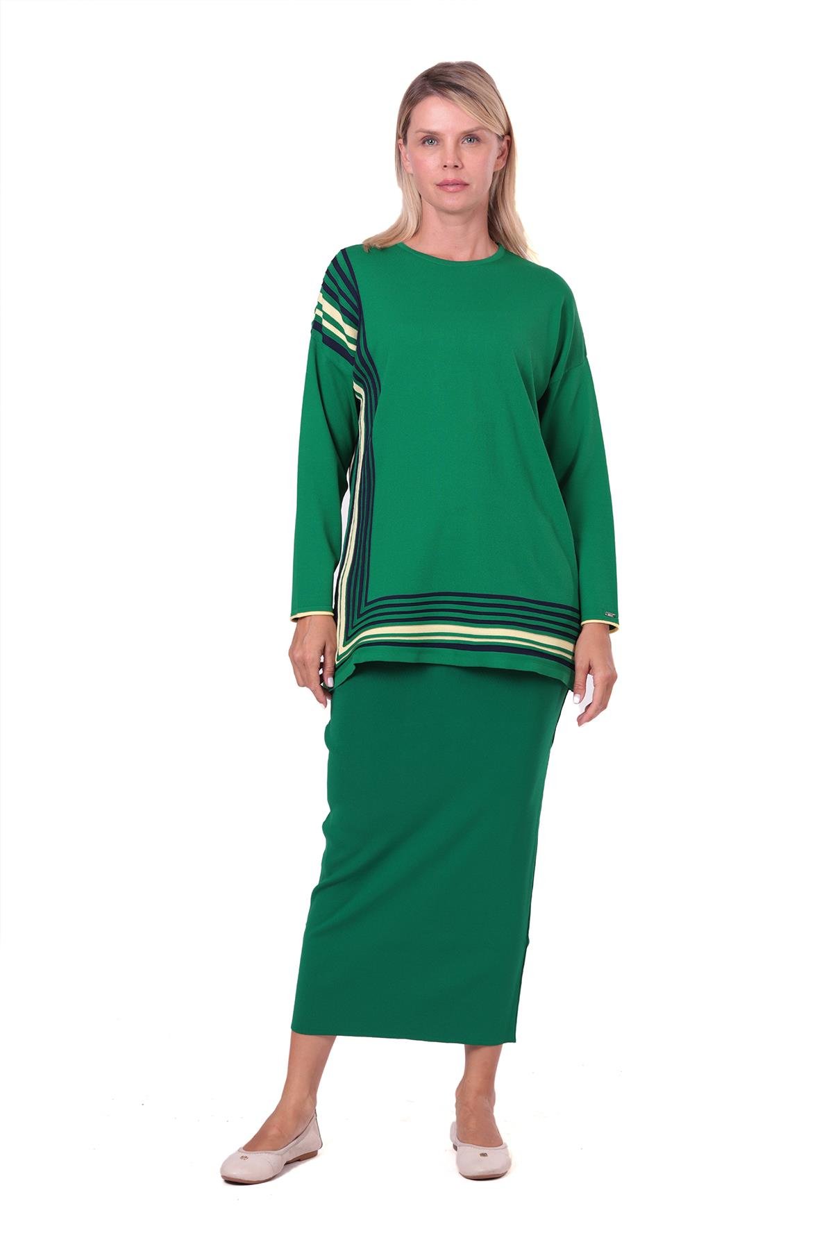 Şerit Triko Hırka YEŞİL (7133)