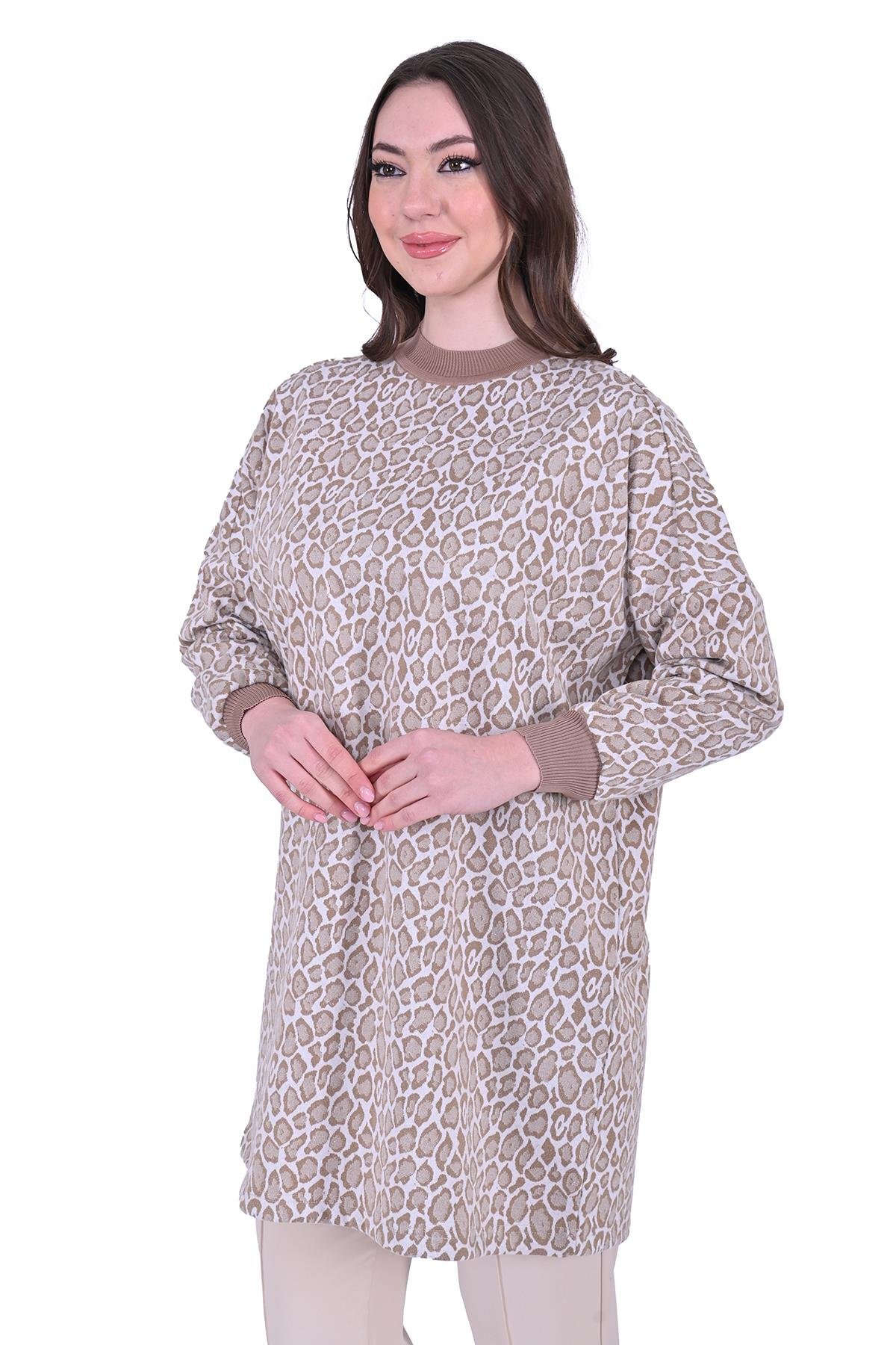 Cesur desenleri modern kesimle buluşturan bu tunik, zarif dokusuyla şıklığınızı tamamlıyor. Salaş formu hareket özgürlüğü sağlarken ince işçilik detayları her adımda estetiğin altını çiziyor.Kol manşetlerindeki ve etek ucu detaylarındaki ince işçilik, sade şıklığa estetik bir vurgun yapıyor.