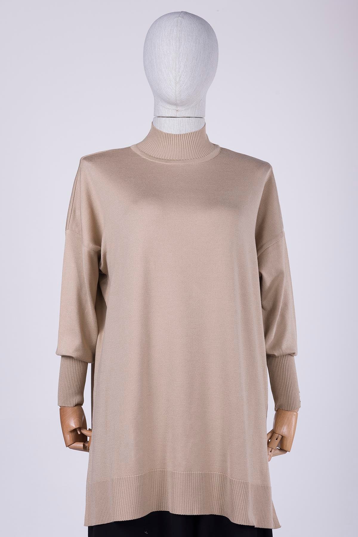 Yakası balıkçı kesim, kontrast kollu tasarımıyla modern bir hava sunan bu tunik, rahat kesimiyle gün boyu konfor sağlar. Simetrik etek ucu, şıklığı hareketli bir dokunuşla tamamlar. Fermuarsız ön tasarımı ve cep detayları, kullanım kolaylığı sunarak günlük stilinize pratiklik katar.