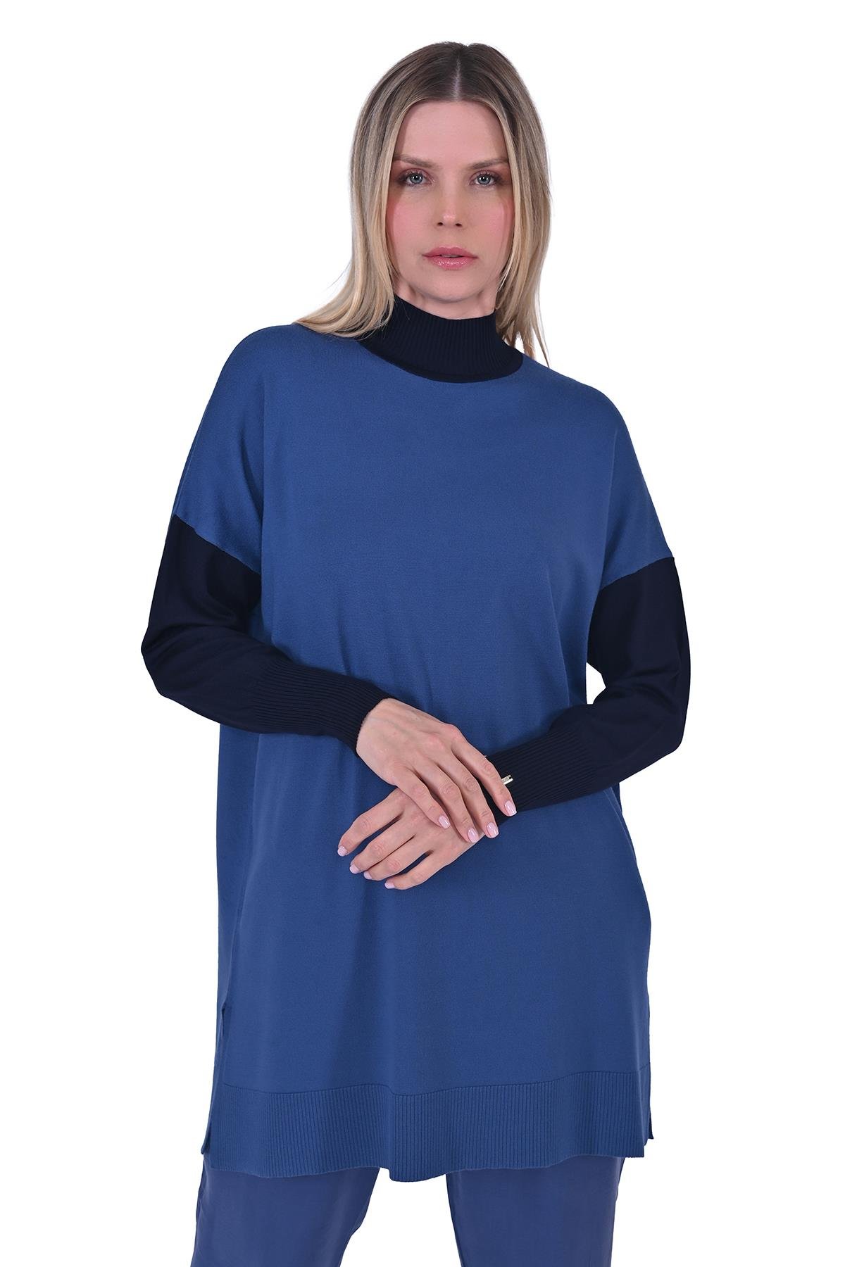 İki Renkli Triko Tunik İNDİGO İki Renkli Triko Tunik LACİVERT İki Renkli Triko Tunik BEJ