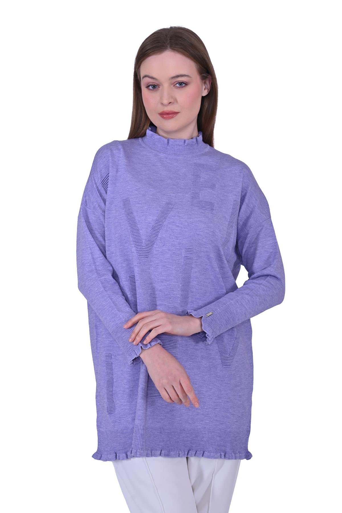 Yumuşak dokulu triko tunik, sade şıklığı sevenler için ideal bir parça. Gövdedeki kabartma yazı detayları modern bir hava katarken, fırfır yaka ve etek ucu tasarımıyla zarif bir görünüm sunar. Şıklığı sadelikle buluşturan zarif bir tunik!