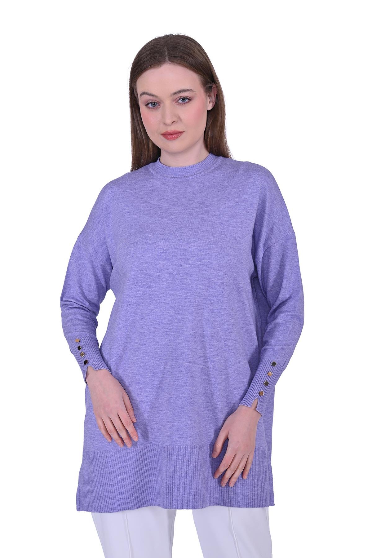 Enerjik ve zarif bir görünüm sunan triko tunik, rahat oversize kesimiyle gün boyu konfor sağlar. Kol manşetlerindeki şık düğme detaylarıyla zarafetini tamamlayan bu model, günlük kullanım ve ofis stiliniz için idealdir.