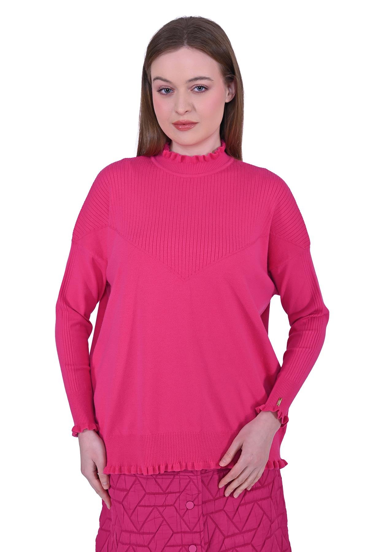 Kol fırfır Triko Tunik FUŞYA (6881)
