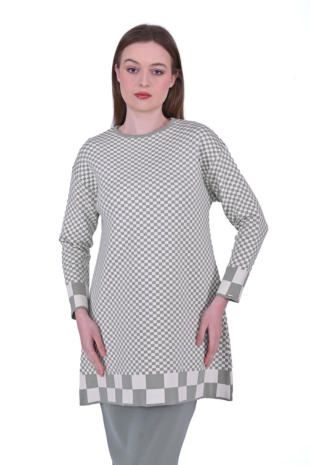 Modern çizgileriyle dikkat çeken bu triko tunik, ön yüzeyindeki geometrik desenleri ve kollarındaki ribana detaylarıyla özgün bir stil sunar. Rahat kesimi ve yumuşak dokusuyla günlük şıklığınızı konforla tamamlar. Yan yırtmaç detayları hareket özgürlüğü sağlarken, minimal tasarımıyla zamansız bir parça olarak gardırobunuzda yerini alır.