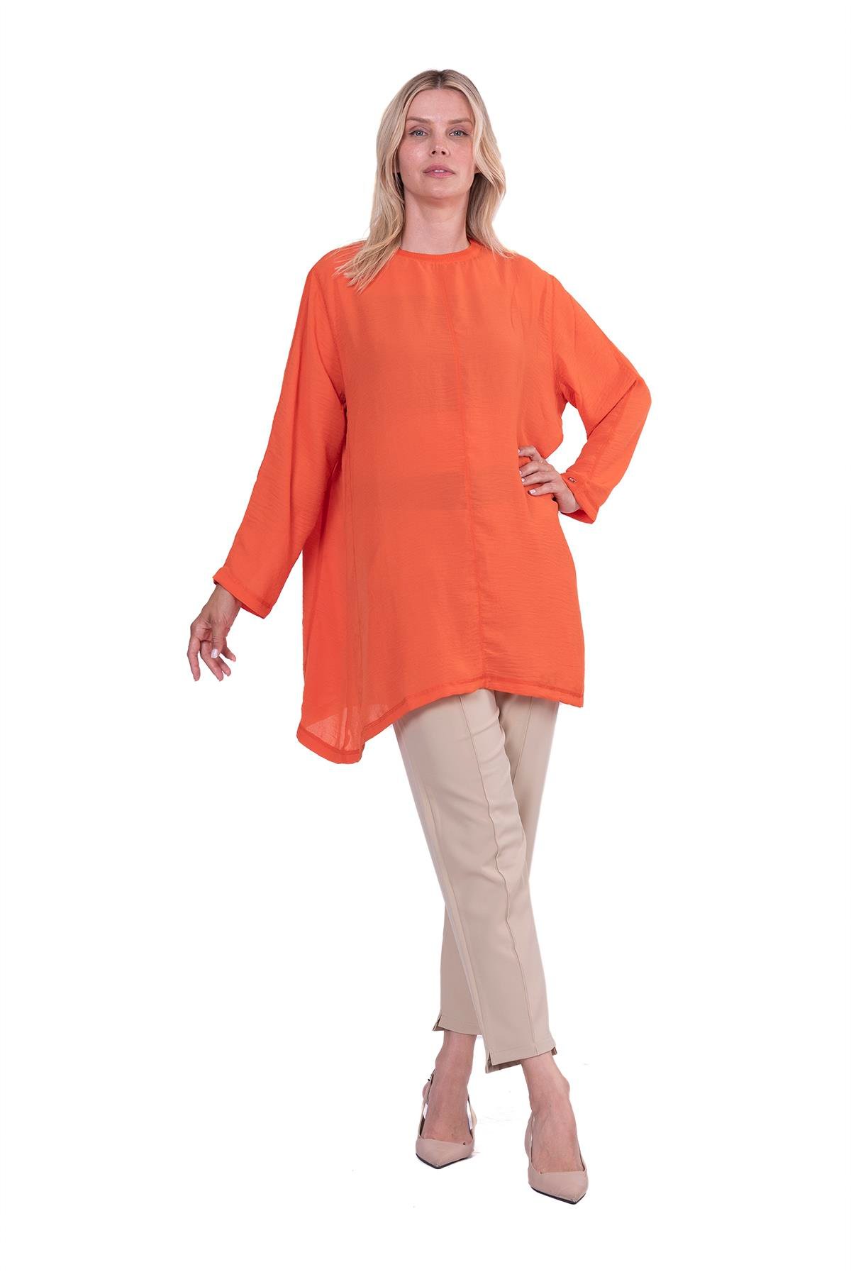 Nazikçe oturan kesimi, gün boyu ferahlık ve rahatlık sunuyor. Minimal yakası ve manşet detayları, sade bir şıklık yakalamanızı sağlıyor.Modern çizgileriyle her kombine uyum sağlayan çok yönlü bir parça.