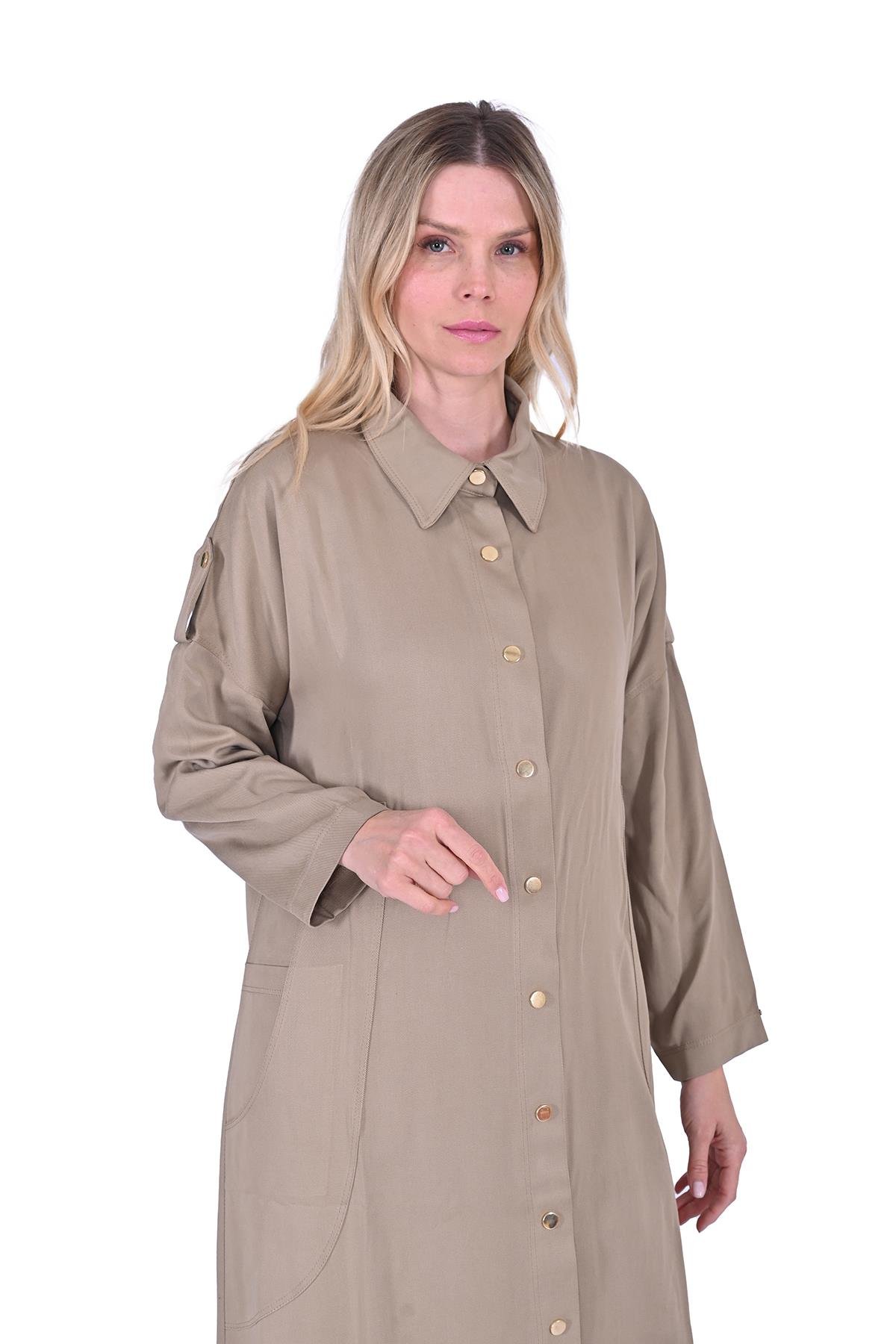 Uzun kesimli trençkot, klasik siluetiyle dikkat çekiyor. İnce yakası ve düzenli düğme sıraları, sofistike bir duruş kazandırıyor. Yan cepler, kullanım kolaylığı sağlarken stile hareket katıyor. Hafif kumaşı, her mevsimde konfor sunuyor.