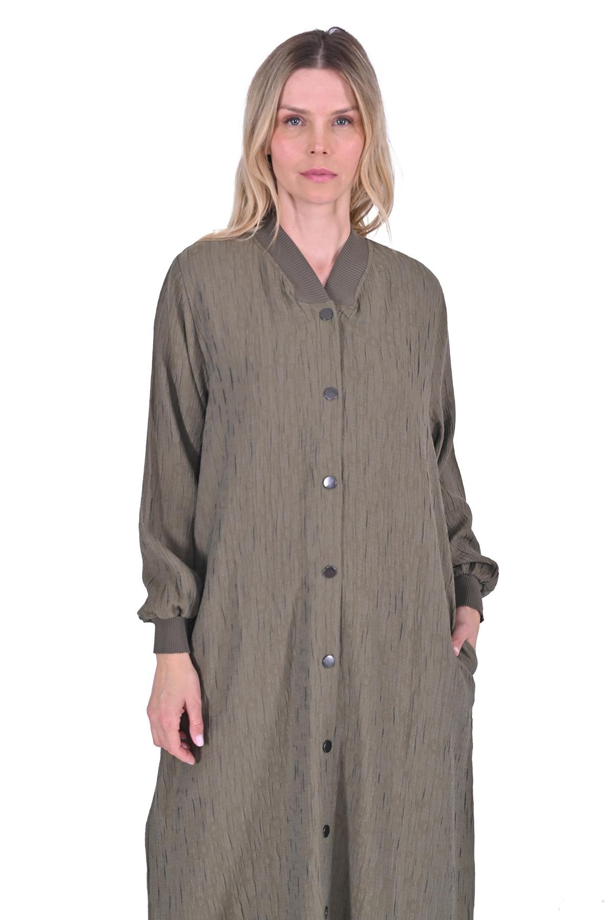 Bu tunik, zarif dökümlü kesimiyle göz alıcı bir akış sunuyor. Yumuşak dokusu, gün boyu konforu garanti ederken bedeninizi nazikçe kuşatıyor. İnce pile detayları, forma hareket kazandırarak her adımda hafifçe dalgalanmasını sağlıyor. Ön düğme kapaması, sade tasarıma hem fonksiyonellik hem de ince bir estetik dokunuş katıyor.
