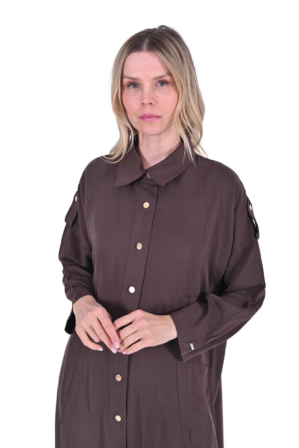 Uzun kesimli trençkot, klasik siluetiyle dikkat çekiyor. İnce yakası ve düzenli düğme sıraları, sofistike bir duruş kazandırıyor. Yan cepler, kullanım kolaylığı sağlarken stile hareket katıyor. Hafif kumaşı, her mevsimde konfor sunuyor.