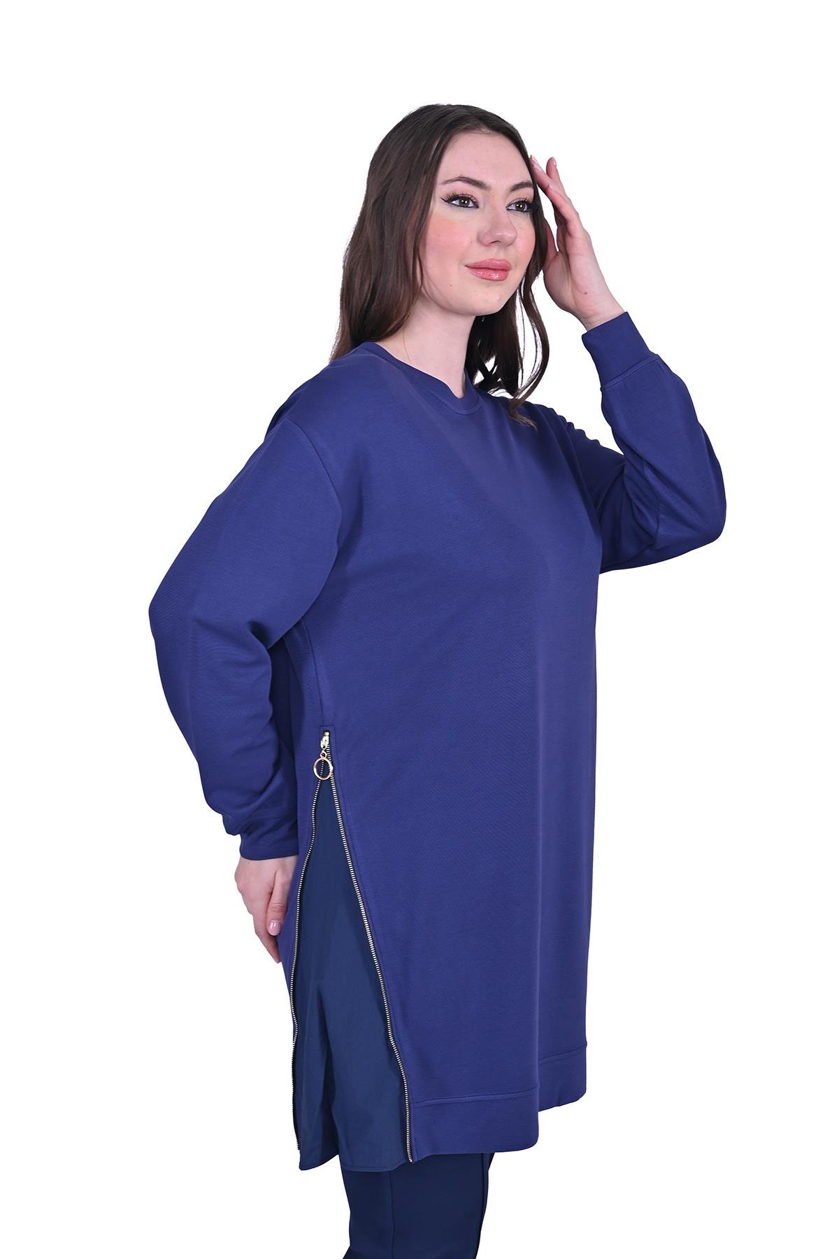 Yandan Fermuarlı Pamuk Tunik İNDİGO (7047)